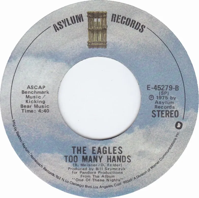 “Too Many Hands” is a rock track from the Eagles’ fourth studio album, One of These Nights, released on June 10, 1975, by Asylum Records. The song was written by bassist Randy Meisner and guitarist Don Felder, with lead vocals performed by Meisner. It runs 4 minutes and 43 seconds and features a world music influence through the use of tablas played by Don Henley.