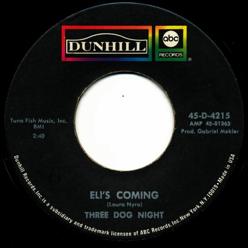 “Eli’s Coming” was written by Laura Nyro and first recorded by her in 1967 for her album Eli and the Thirteenth Confession, released in 1968. Three Dog Night covered the song, releasing it on June 11, 1969, as a single from their second album Suitable for Framing on Dunhill Records.