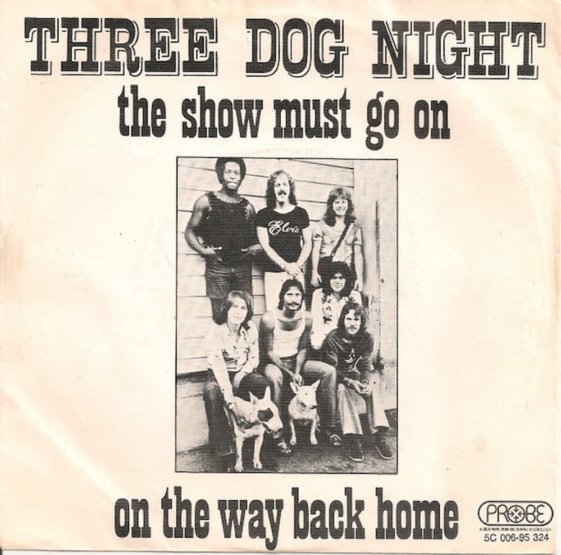 “The Show Must Go On” is a song written by Leo Sayer and David Courtney, originally recorded by Sayer in 1973 on his album Show Must Go On. Three Dog Night covered the song, releasing it on March 11, 1974, as the lead single from their ninth studio album Hard Labor on Dunhill Records. The song reached No. 4 on the Billboard Hot 100 and No. 10 on the Billboard Easy Listening chart, marking another hit in the band’s late 1970s success run. It followed their earlier No. 1 hits like “Joy to the World.”