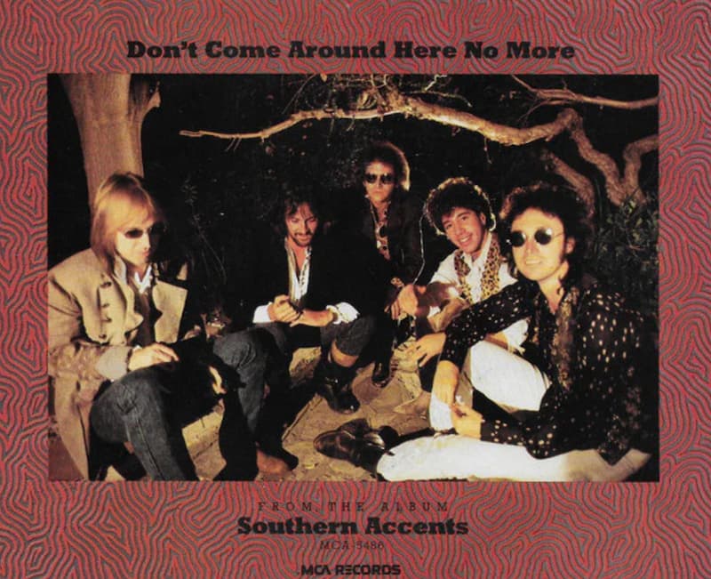 “Don’t Come Around Here No More” is a rock song written by Tom Petty and Dave Stewart, recorded by Tom Petty and the Heartbreakers for their fifth album, Southern Accents, released on March 26, 1985, by MCA Records. Released as the album’s lead single in February 1985, with “Trailer” as the B-side, it peaked at No. 13 on the Billboard Hot 100 on May 11, 1985, spending 14 weeks on the chart, and reached No. 2 on the Billboard Mainstream Rock Tracks chart. It also hit No. 20 on the Canadian RPM Top Singles chart and No. 42 on the UK Singles Chart. The album reached No. 7 on the Billboard 200 and was certified platinum by the RIAA for one million US sales.